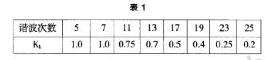 國家標準 GB/T14549—93中推薦 ,兩個諧波源的同次諧波 電流在 同一地點 的同一相上疊加 ,當相 位不 確定 時可按下式 進行計算 :Ih=、/Ih1+I}l22+Kh1IhlI}l2 式 中 Kh系數(shù)按表 2選取 。I 和 I分別為諧波源 1和 2的 第 h次諧波 電流 ,單位為 A。